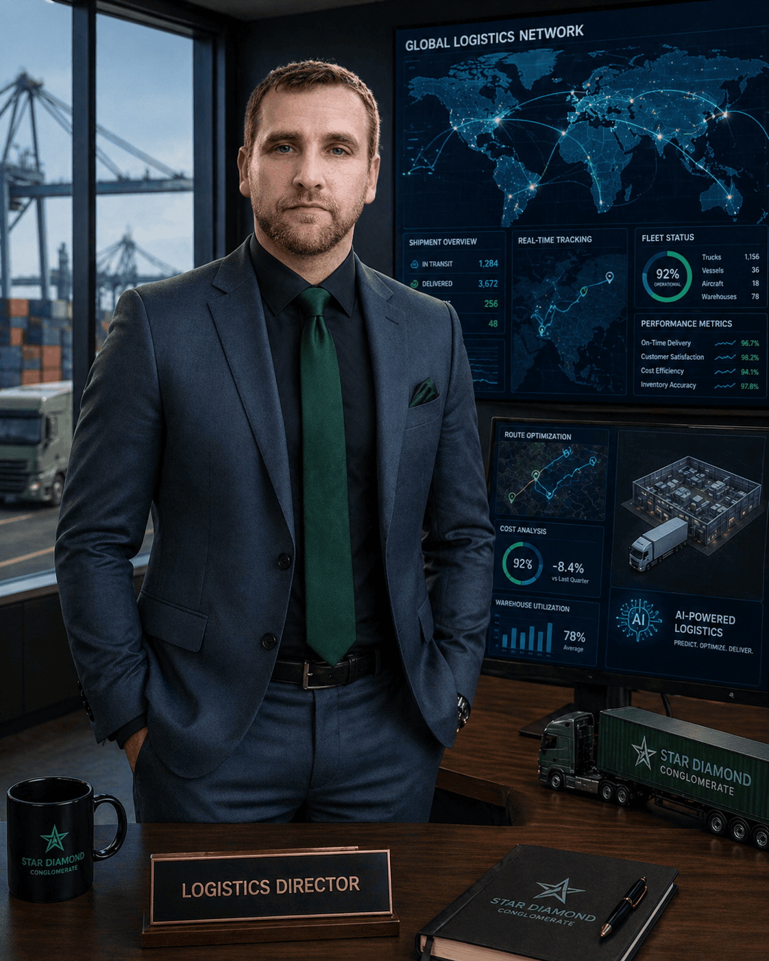 Zane Auton serves as Chief Logistics Officer of Star Diamond Conglomerate, where he leads the strategy, coordination, and execution of logistics and supply chain operations across all divisions. He is responsible for ensuring the seamless movement of goods, services, and resources—optimizing efficiency, reliability, and scalability throughout the organization.