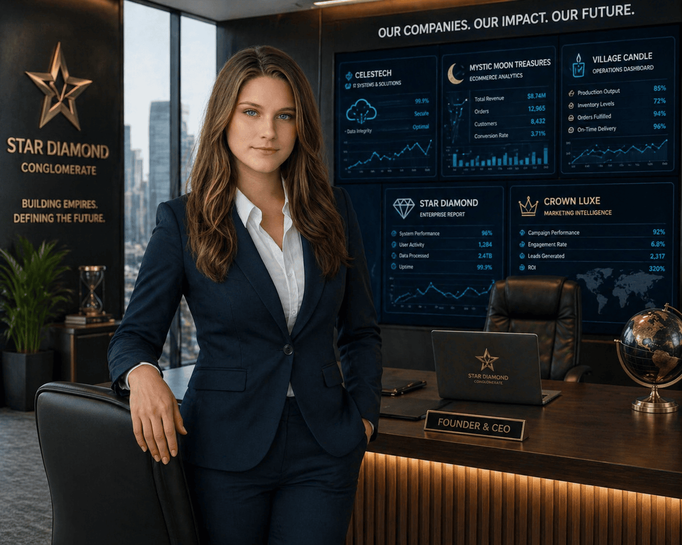 As the architect behind a growing empire of companies spanning technology, media, finance, and design, she focuses on integrating AI-driven innovation and smart business solutions to redefine how modern enterprises operate. Her work is rooted in empowering others—whether through business development, creative expression, or groundbreaking technology.